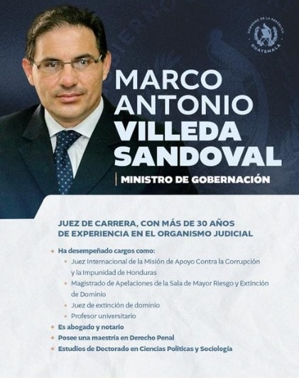 La Secretaría de Comunicación Social de la Presidencia reiteró que, una vez cumplido el procedimiento de notificación, Villeda podrá ser juramentado como jefe del Mingob, en sustitución de Francisco Jiménez, quien continúa al frente de la cartera hasta que se formalice el relevo.