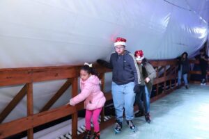 La actividad busca ofrecer una opción de entretenimiento durante las fiestas de fin de año para familias y grupos de amigos. Los organizadores invitan a los asistentes a respetar las filas y esperar su turno para ingresar a la pista.