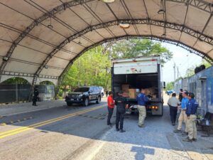 En ese lugar las autoridades descubren que un camión transportaba 100 vajillas, 48 bobinas para embalar líquidos, zapatos y ropa, lo cual es producto mexicano y tiene un evaluó de Q62 mil.