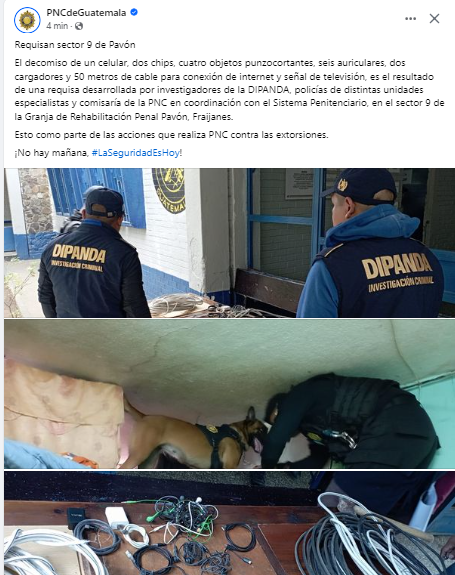 En una operación conjunta entre investigadores de la DIPANDA, agentes especializados de la PNC y el Sistema Penitenciario, se llevó a cabo una requisa en el sector 9 de la Granja de Rehabilitación Penal Pavón, Fraijanes.