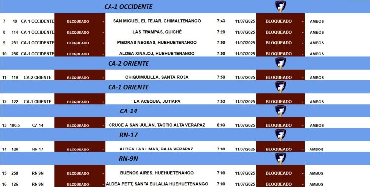 Desde las primeras horas de este viernes 11 de julio, diversas carreteras en Guatemala permanecen bloqueadas por personas que se identifican como integrantes de un sindicato del magisterio, marcando el segundo día consecutivo de manifestaciones que afectan la movilidad a nivel nacional.