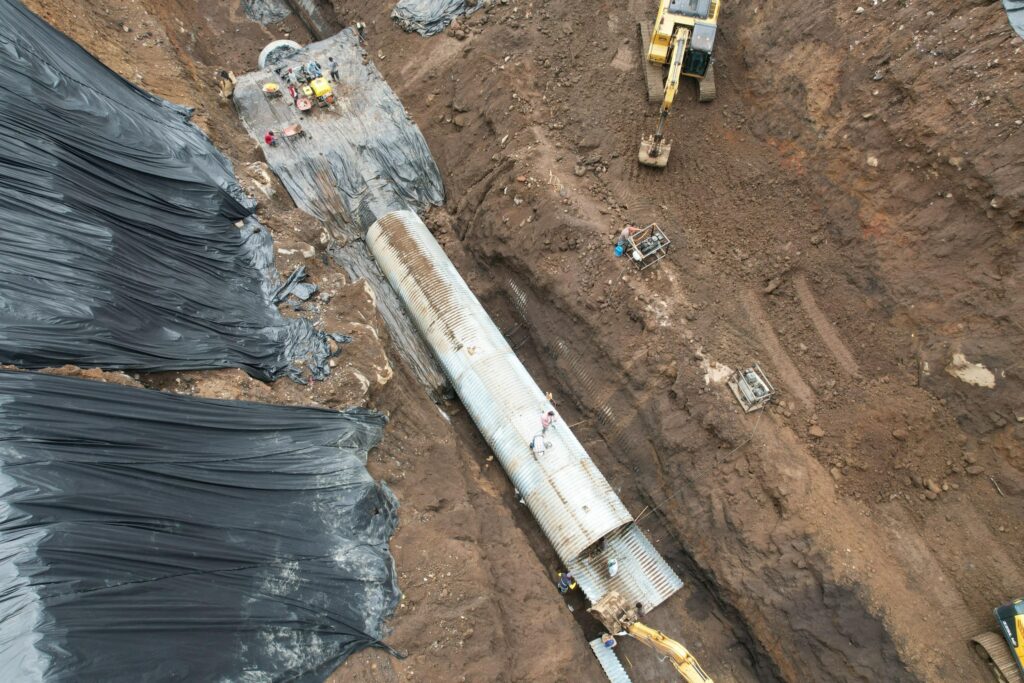 Los trabajos en curso incluyen la instalación de segmentos de tubería y su fijación con más de 11 mil pernos, además de la compactación manual del terreno y otras actividades complementarias.