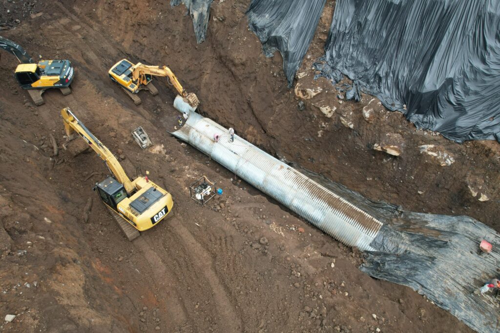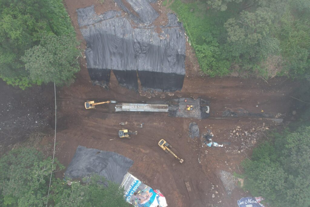 En el lugar operan cuatro excavadoras de 20 y 30 toneladas, las cuales se encargan de retirar el material contaminado o saturado para luego colocar el relleno necesario en los costados de las tuberías ya instaladas. Además, se está realizando la limpieza y colocación de una segunda tubería transversal.