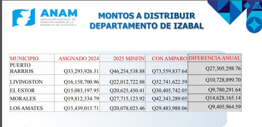 Este es un ejemplo de los montos que deberían recibir, por ejemplo, las municipalidades de Izabal: